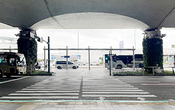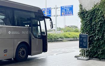 STEP 04. Arrive at the Nest Hotel Shuttle Bus sign and board the bus (Approx. 10-15 minutes to the hotel)